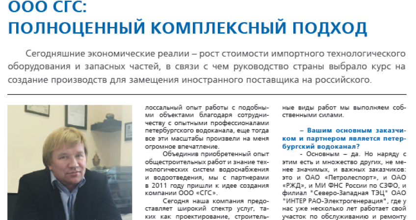 В Петербурге одной из таких компаний, несомненно, является ООО «СГС». О деятельности компании рассказывает ее генеральный директор Вячеслав Олегович Фёдоров.